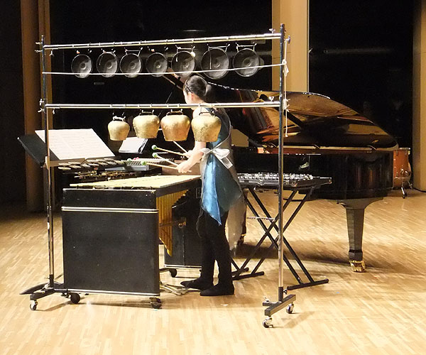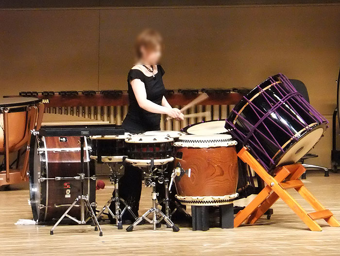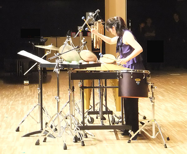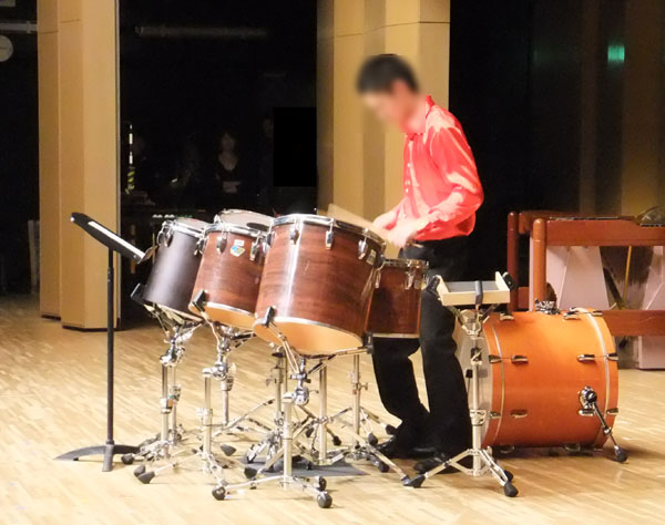 マレットの種類による音色差や素手で叩いた音も表現します。