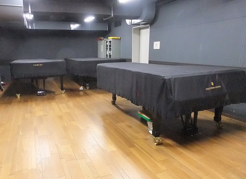 4台のコンサート用ピアノが揃っています。