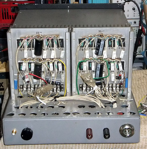 ヒートシンク上の基板はパワー部の旧2段カスケード定電圧電源基板です。