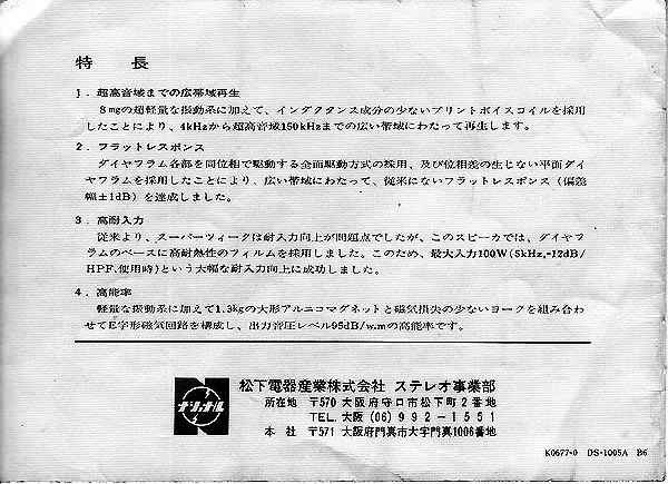 5. 松下 テクニクス10TH1000 リーフツイーター