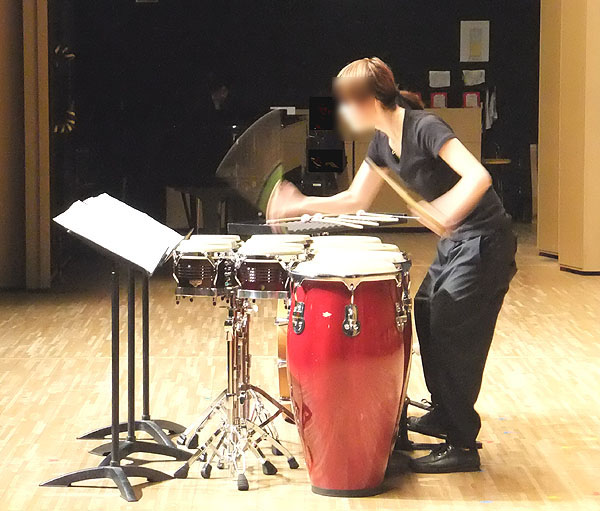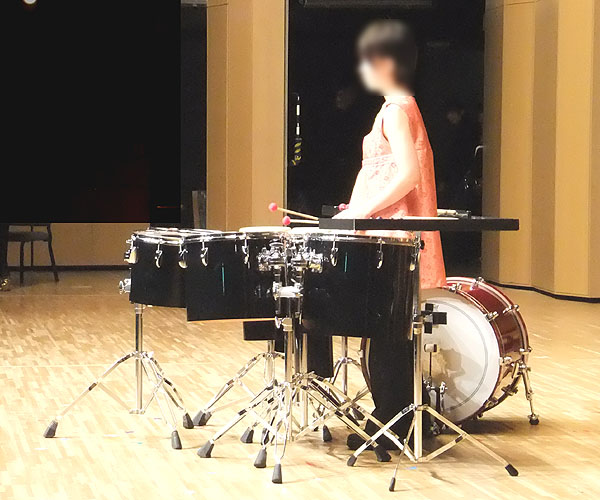 マレットの種類による音色差や素手で叩いた音も表現します。
