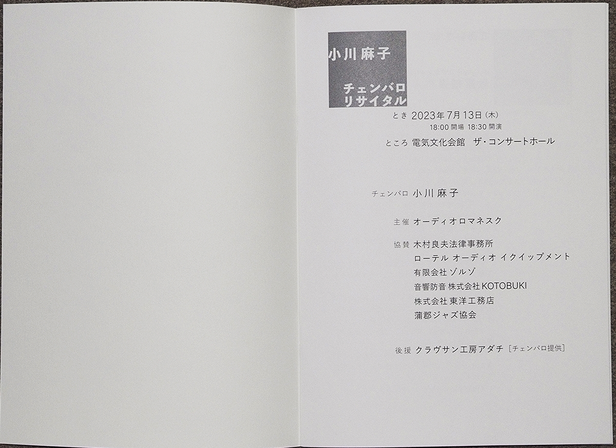 小川麻子チェンバロリサイタルのチラシとパンフレット
