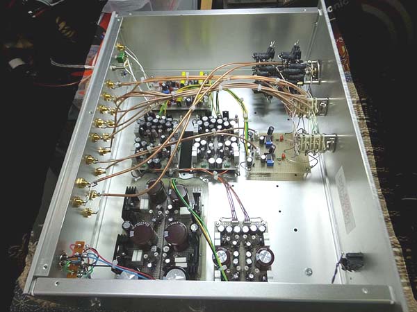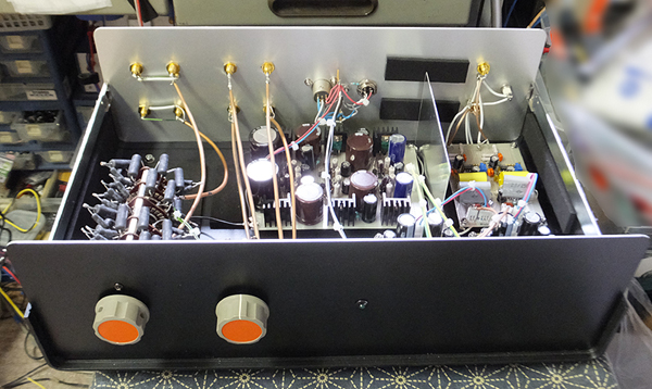 フォノイコライザー付きパッシブアッテネーター 別電源仕様のフォノイコライザー付きパッシオブアッテネーターです。 入力はお客様からの要望でフォノイコライザーを含めて 3入力です。 ロマネスクプリアンプシャーシを使用した フォノイコライザー付きパッシブアッテネーターです。 外部電源仕様です。 試聴の様子です。