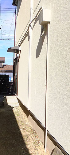 上記の画像の左側から右側のボックス経由で室内に配線しています。