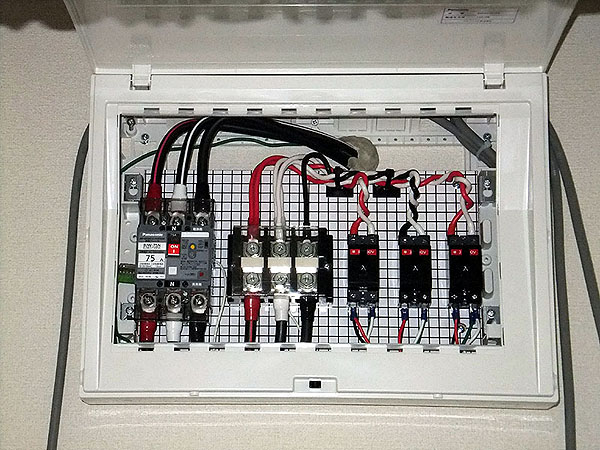 室内のボックスには75Aのブレーカー経由で