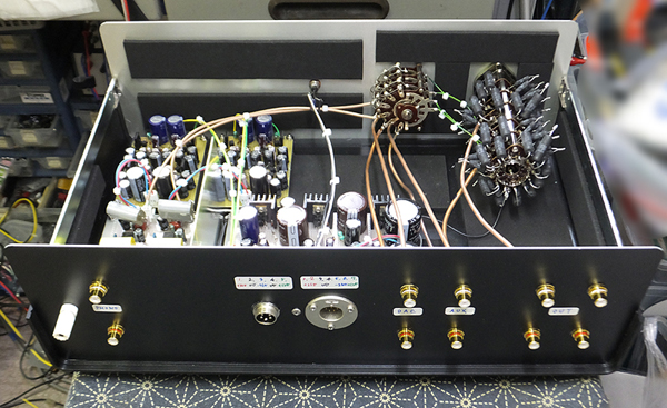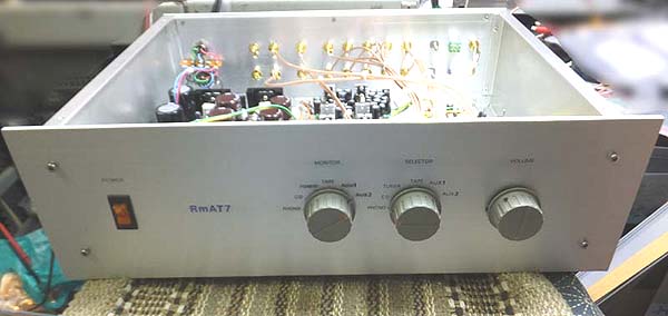 フォノイコライザー付きパッシブアッテネーター 別電源仕様のフォノイコライザー付きパッシオブアッテネーターです。 入力はお客様からの要望でフォノイコライザーを含めて 3入力です。 ロマネスクプリアンプシャーシを使用した フォノイコライザー付きパッシブアッテネーターです。 外部電源仕様です。 試聴の様子です。