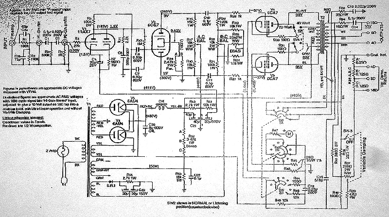 内部を開けてみた処、出力管6CA7のバイアス回路の電解コンデンサーが劣化していました。