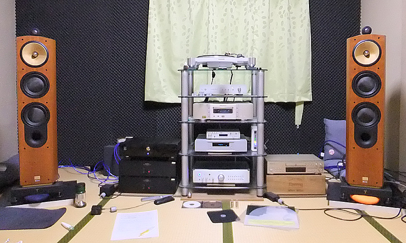 スピーカーの間にあったアンプラックを、右側に寄せました。