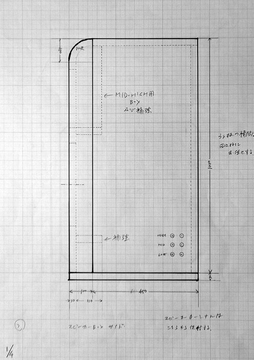 フロントバッフルの幅はノーマルのSB−M2と同じ幅にして