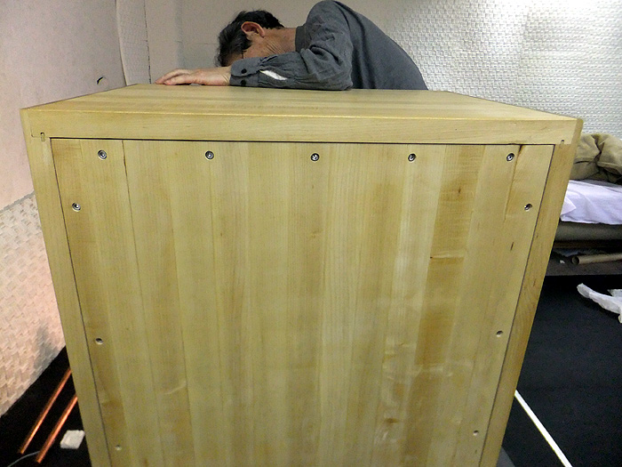 フロントバッフルの取りつけ中です。