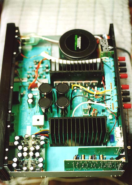 ROTEL RA980BX このアンプは電源トランスは400VAのトロイダルトランスが1個ですが、 左右の電源回路は各々別電源回路になっており 各10000?Fのコンデンサーが4個使用されています。 つまり準モノラルアンプ仕様です。 120W12Aのパワートランジスタが3パラレルという 他社では30〜40万円クラスのアンプでしかやらない豪華なアンプ?です。 そのためどのようなスピーカーも良いバランスで鳴らす事が出来ます。