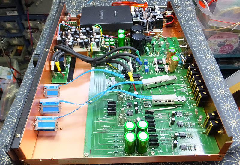 Rotel RC880MKVのチューン 19/10/09 古いローテルのプリアンプです。 内部は電源回路から左右別電源になっているので、 セパレーションの良い音です。 電源トランスはRコアです。 フラットアンプは新たに設計をして回路を変えています。 定電圧電源を新たに製作して交換しています。 フォノイコライザーはMCとMMが別回路になっています。 切り替えスイッチが小さいのでやり難いですが、 合理的な設計です。