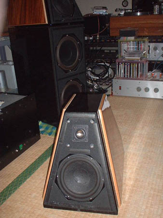Wilson System5 有名なスピーカーシステムです。 上部がWatt、 下部がPaffyです。 全く箱鳴きが無く、スピーカーユニットの音そのものが聞こえてきます。 各ユニットがバラバラに鳴っているので音の出方を揃えました。
