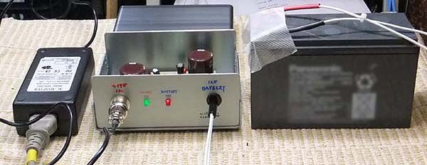 これは製作したバッテリー充電器と、電源のACアダプター、